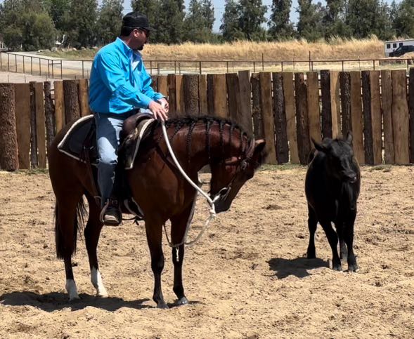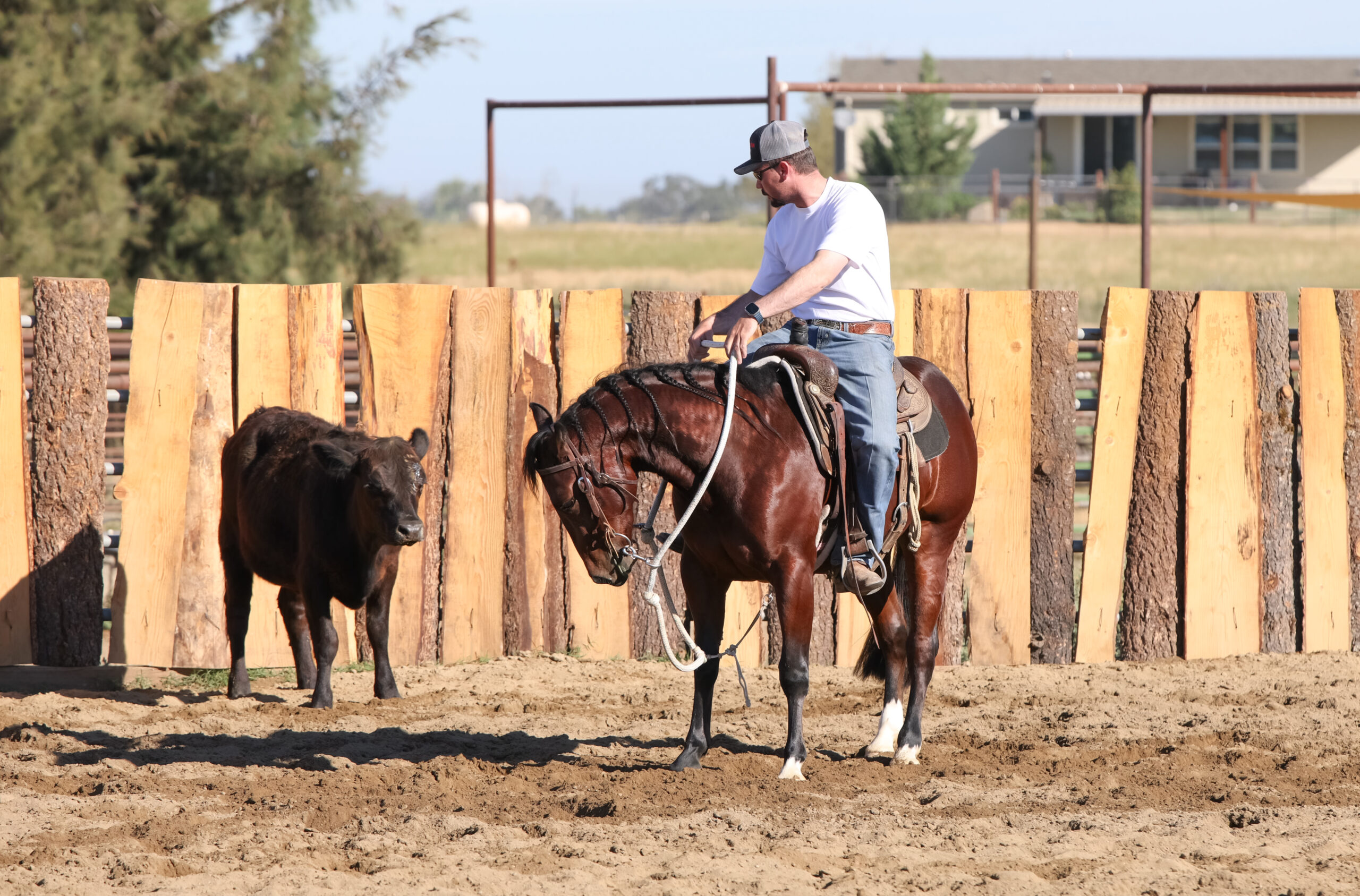 These fundamentals are then tied to a cow and horses are taught to track and work a cow on their own.